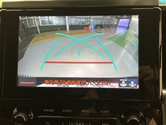 車庫入れなど後進運転時に死角をモニターで確認ができて安全です♪ ステアリング操作の参考になるガイド線も表示しますので車庫入れがニガテな方も安心ですネ!