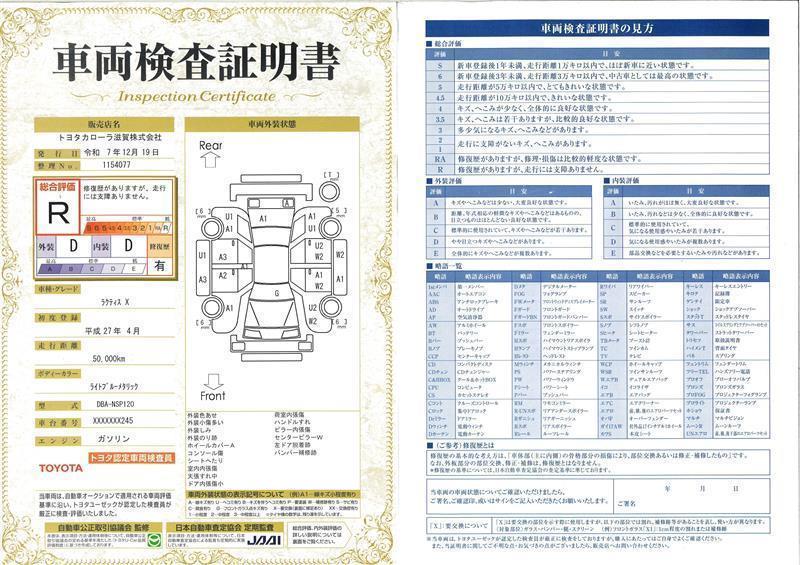 ※ 「定期点検整備なし(要整備箇所あり)」の場合、整備箇所につきましては、販売店へお問い合わせください。