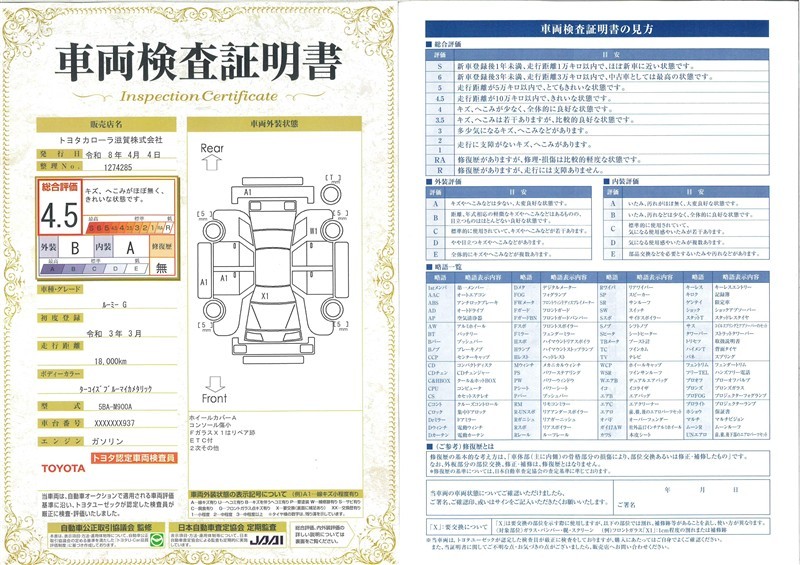 ◆車両検査証明書◆修復歴やクルマの状態を正しく評価できる「トヨタ認定車両検査員」が1台1台クルマの状態を評価。総合評価は10段階、内装・外装は5段階で点数表示。クルマ選び・購入前の安心をお届けします!