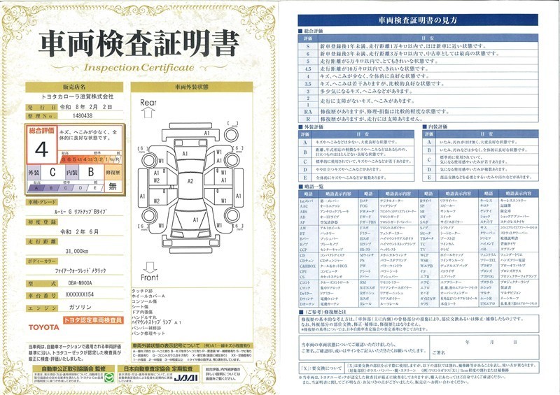 ◆車両検査証明書◆修復歴やクルマの状態を正しく評価できる「トヨタ認定車両検査員」が1台1台クルマの状態を評価。総合評価は10段階、内装・外装は5段階で点数表示。クルマ選び・購入前の安心をお届けします!