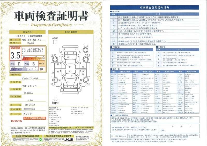 ◆車両検査証明書◆修復歴やクルマの状態を正しく評価できる「トヨタ認定車両検査員」が1台1台クルマの状態を評価。総合評価は10段階、内装・外装は5段階で点数表示。クルマ選び・購入前の安心をお届けします!