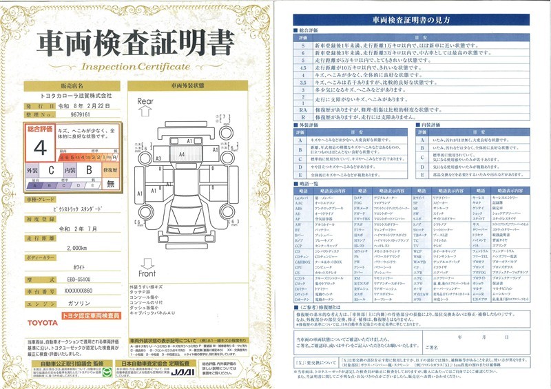 ※ 「定期点検整備なし(要整備箇所あり)」の場合、整備箇所につきましては、販売店へお問い合わせください。