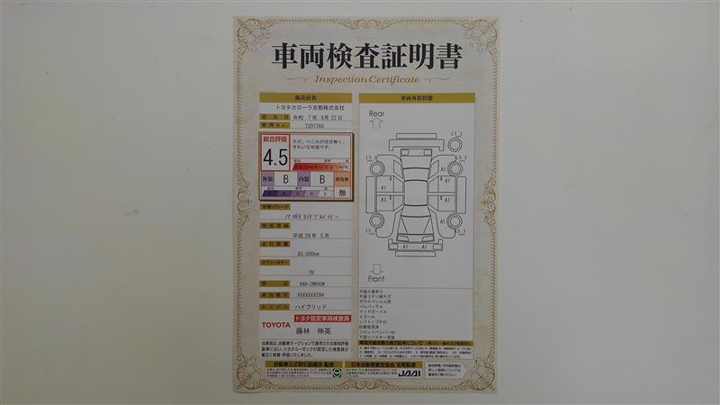 車両検査証明書になります。総合評価4、5でキズ、へこみがほぼ無く、きれいな状態です!!