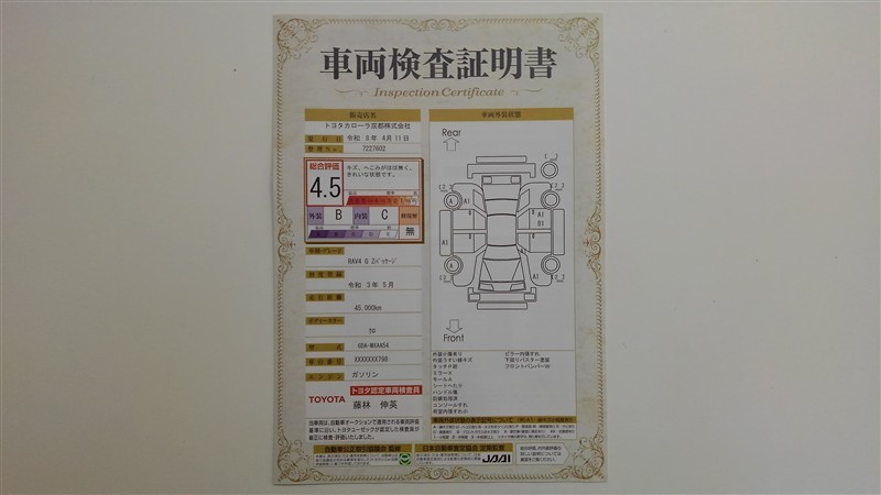車両検査証明書付きです!だれでも中古車の状態がすぐにわかるよう、車のプロが客観的に評価。車両の状態やわずかなキズも正確にお伝えします。