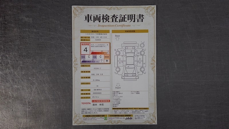 車両検査証明書付きです!だれでも中古車の状態がすぐにわかるよう、車のプロが客観的に評価。車両の状態やわずかなキズも正確にお伝えします。
