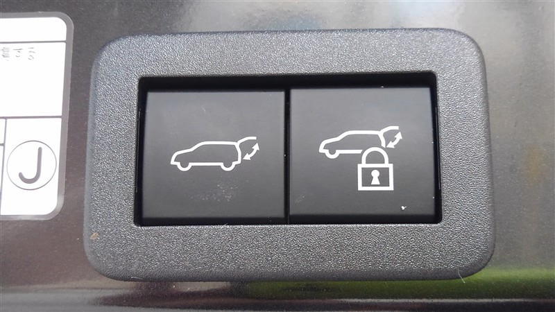 パワーバックドアボタン。右側のボタンはバックドアを閉めると同時にカギがロックされます。