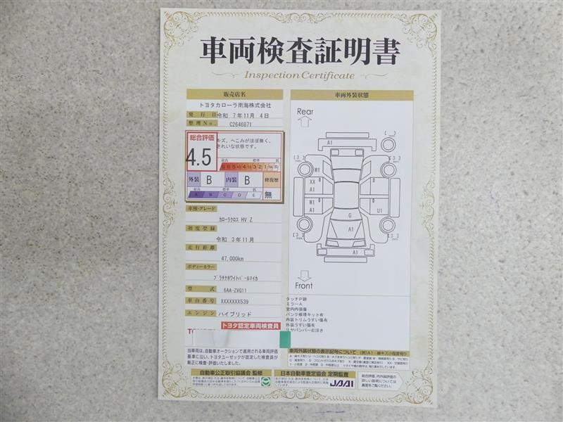 保証付:ロングラン保証1年<走行距離無制限> +ハイブリッド保証<保証期間は初度登録年月から10年目まで、もしくは3年間のいずれか長い方。但し走行距離20万キロまで>