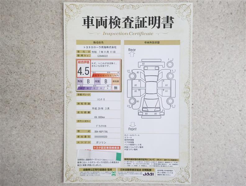 トヨタ車のプロの検査員が実施した「車両検査証明書」付き!車両の状態をこれ1枚でチェックできます!