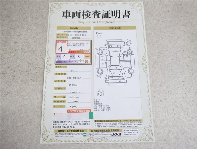 トヨタ車のプロの検査員が実施した「車両検査証明書」付き!車両の状態をこれ1枚でチェックできます!
