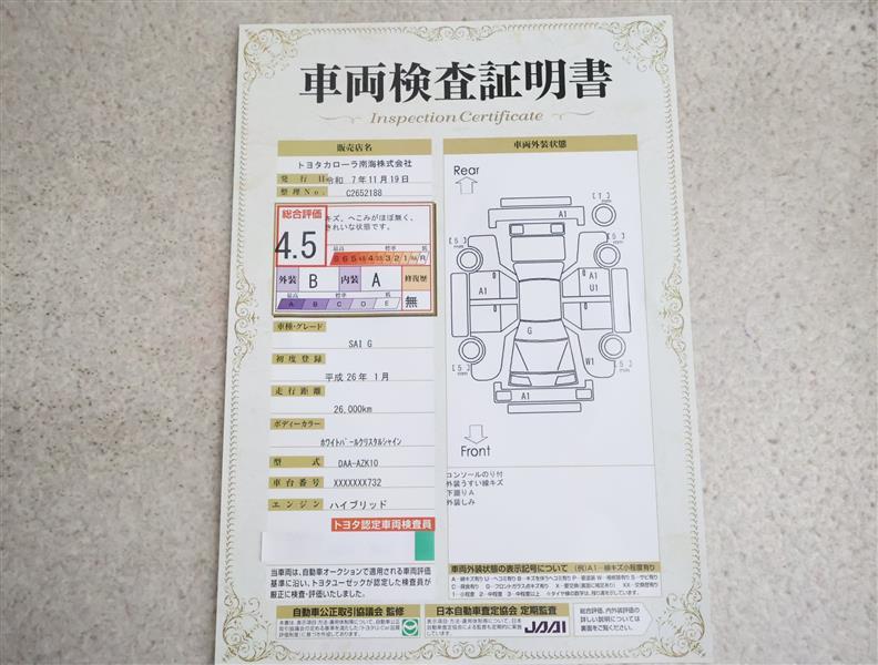 ※ 「修復歴あり」の場合、修復部位の詳細につきましては、販売店へお問い合わせください。