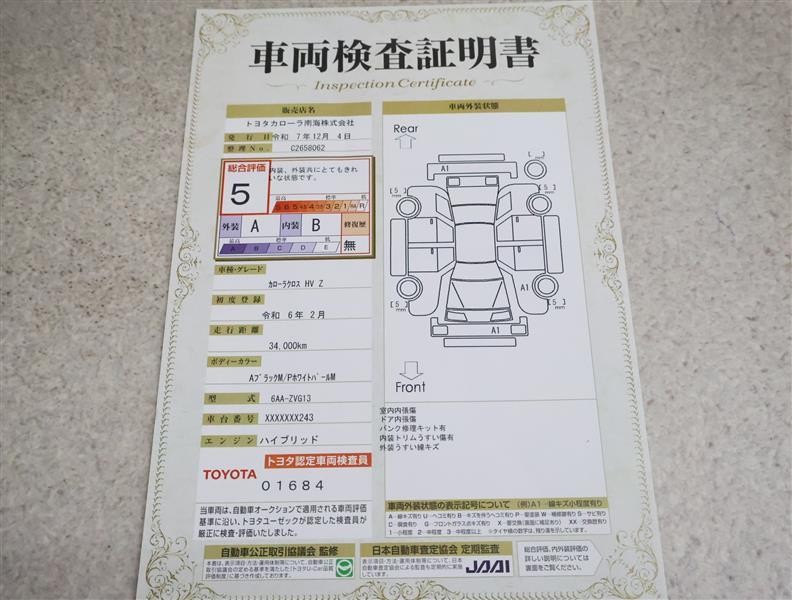 トヨタ車のプロの検査員が実施した「車両検査証明書」付き!車両の状態をこれ1枚でチェックできます!