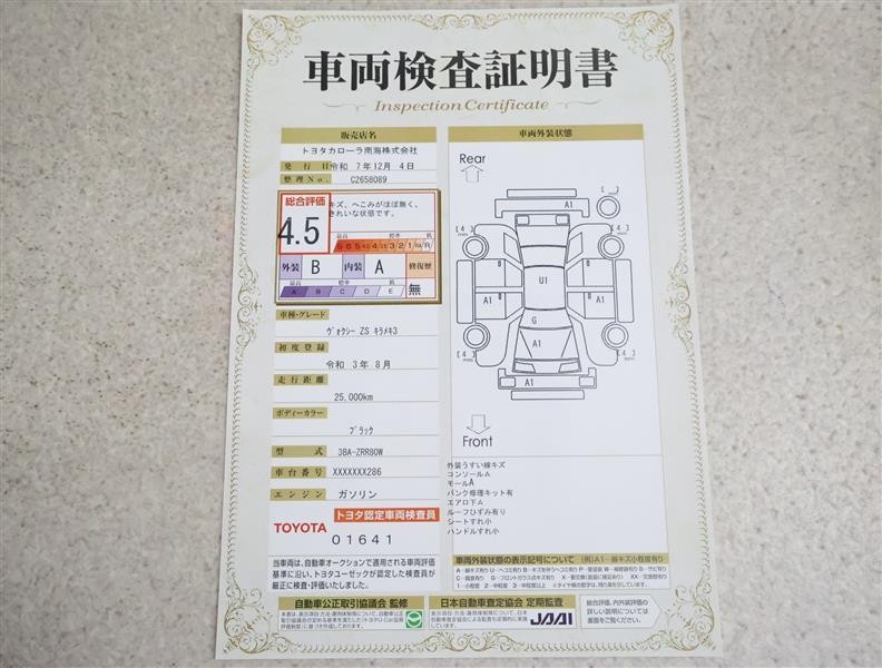 トヨタ車のプロの検査員が実施した「車両検査証明書」付き!車両の状態をこれ1枚でチェックできます!
