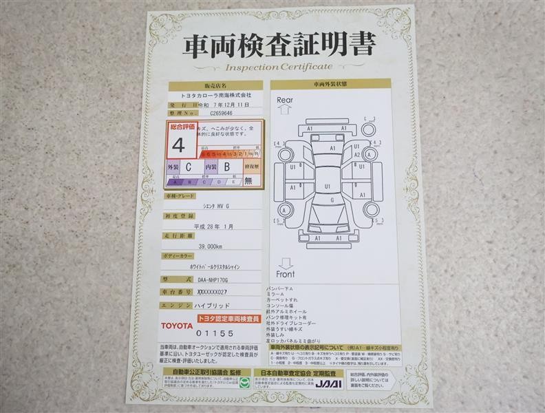 車両検査証明書付きです!だれでも中古車の状態がすぐにわかるよう、車のプロが客観的にチェック。車両の状態やわずかなキズも正確にお伝えします。