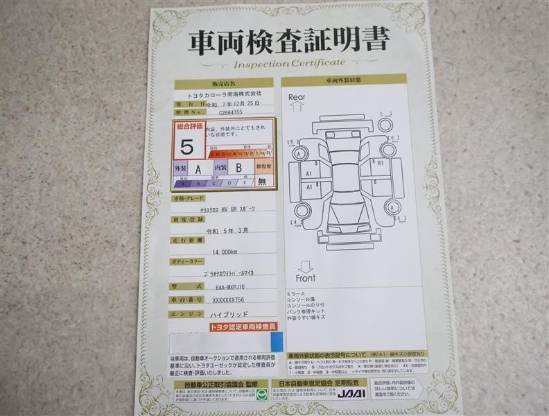 トヨタ車のプロの検査員が実施した「車両検査証明書」付き!車両の状態をこれ1枚でチェックできます!