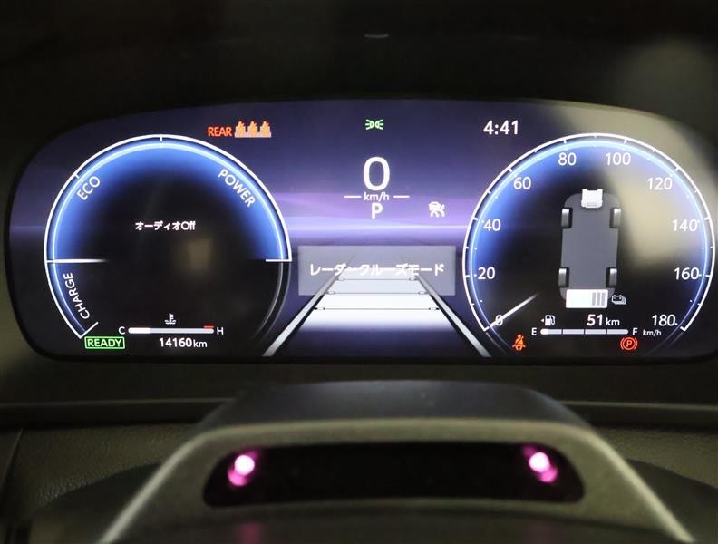 レーダークルーズコントロール(全車速追従機能付)付きです。車速に応じて追従支援してくれるので、ロングドライブも快適です。詳細は販売店スタッフまでおたずねください。