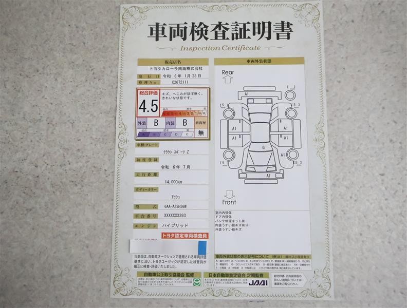 トヨタ車のプロの検査員が実施した「車両検査証明書」付き!車両の状態をこれ1枚でチェックできます!