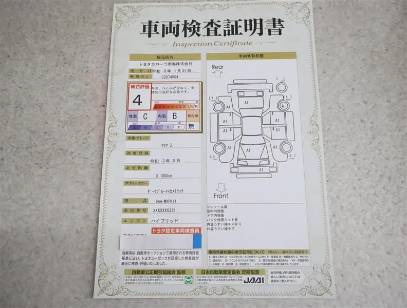 トヨタ車のプロの検査員が実施した「車両検査証明書」付き!車両の状態をこれ1枚でチェックできます!
