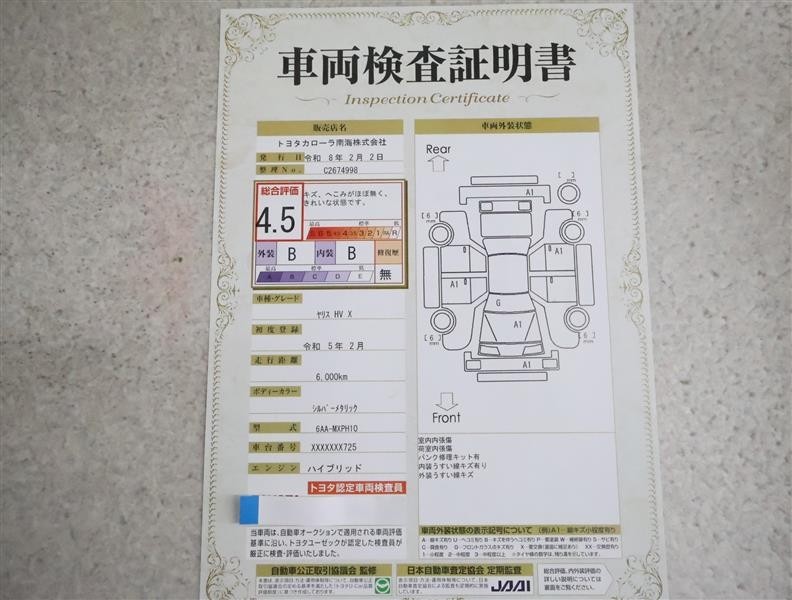 車両検査証明書付きです!だれでも中古車の状態がすぐにわかるよう、車のプロが客観的にチェック。車両の状態やわずかなキズも正確にお伝えします。