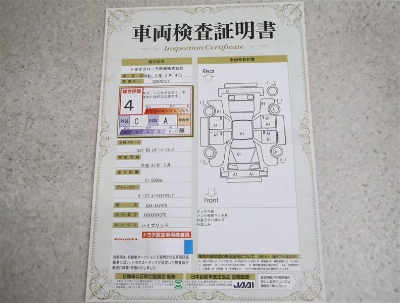 車両検査証明書付きです!だれでも中古車の状態がすぐにわかるよう、車のプロが客観的にチェック。車両の状態やわずかなキズも正確にお伝えします。