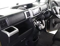 格納式のドリンクホルダー付きです。ドリンクホルダーとしてはもちろん、スマホや長財布を収納することだってできますよ。