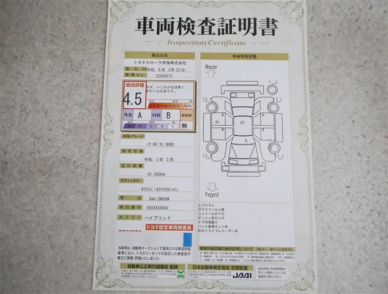 トヨタ車のプロの検査員が実施した「車両検査証明書」付き!車両の状態をこれ1枚でチェックできます!