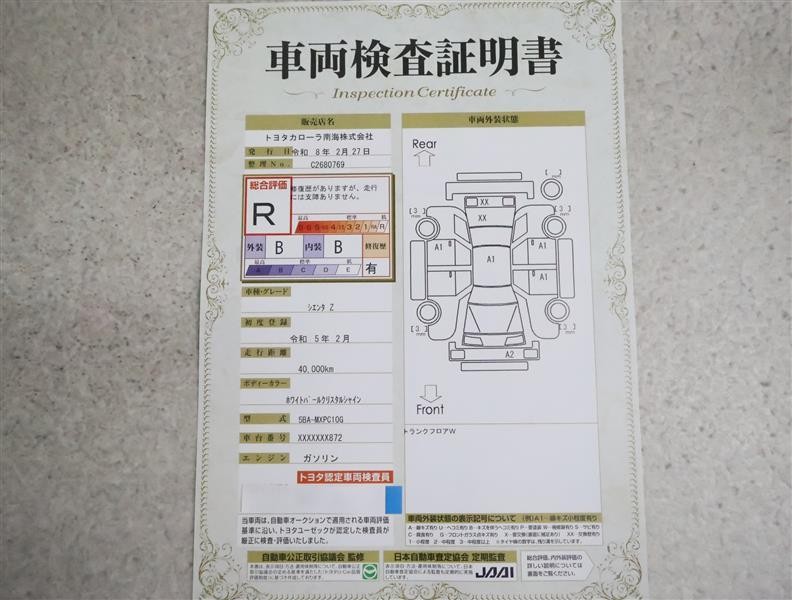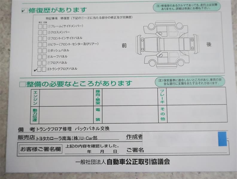 ※ 「修復歴あり」の場合、修復部位の詳細につきましては、販売店へお問い合わせください。
