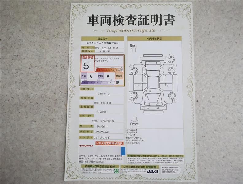 トヨタ車のプロの検査員が実施した「車両検査証明書」付き!車両の状態をこれ1枚でチェックできます!
