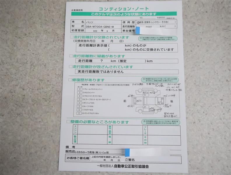 ※ 「定期点検整備なし(要整備箇所あり)」の場合、整備箇所につきましては、販売店へお問い合わせください。
