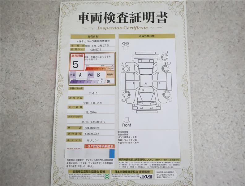 トヨタ車のプロの検査員が実施した「車両検査証明書」付き!車両の状態をこれ1枚でチェックできます!