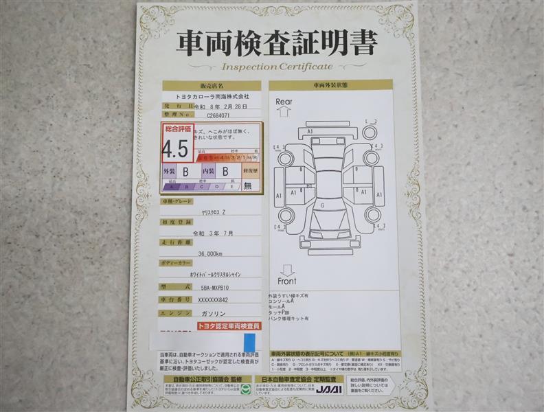 トヨタ車のプロの検査員が実施した「車両検査証明書」付き!車両の状態をこれ1枚でチェックできます!