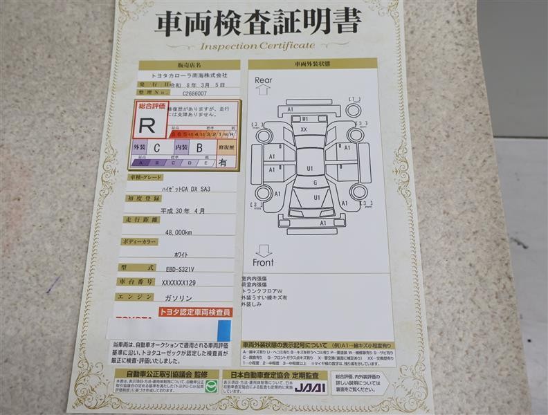 トヨタ車のプロの検査員が実施した「車両検査証明書」付き!車両の状態をこれ1枚でチェックできます!