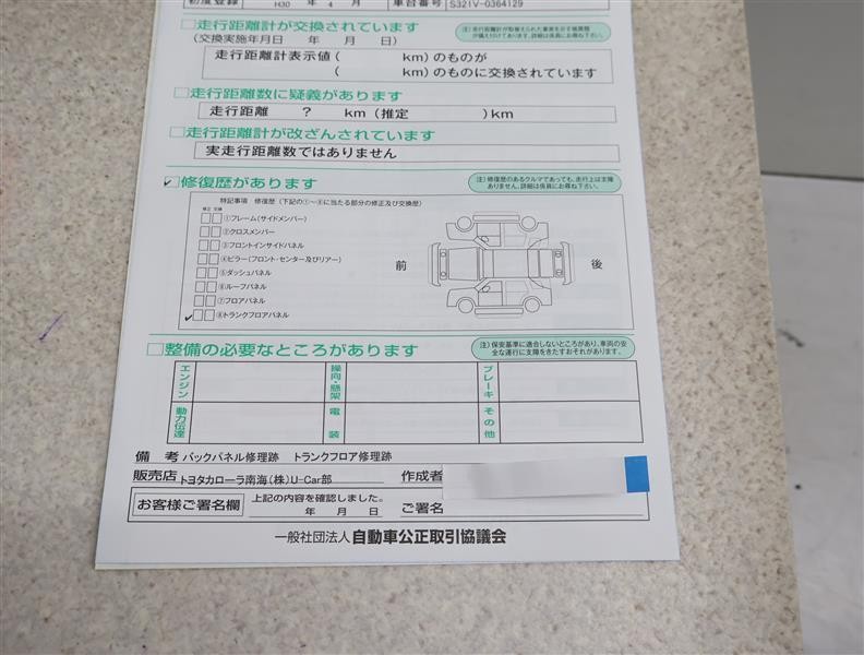 ※ 「修復歴あり」の場合、修復部位の詳細につきましては、販売店へお問い合わせください。