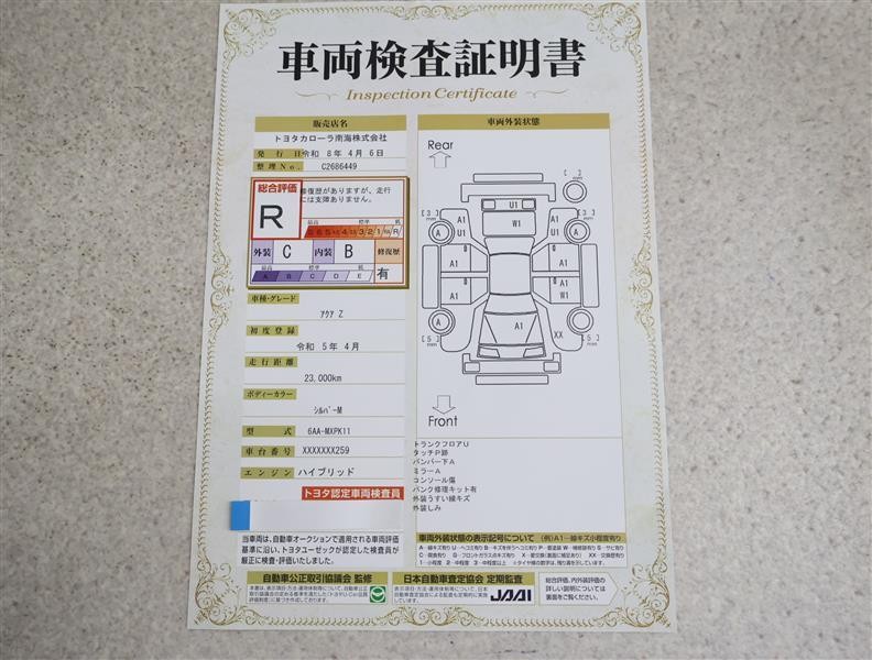 車両検査証明書付きです!だれでも中古車の状態がすぐにわかるよう、車のプロが客観的にチェック。車両の状態やわずかなキズも正確にお伝えします。