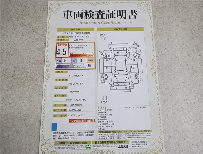 トヨタ車のプロの検査員が実施した「車両検査証明書」付き!車両の状態をこれ1枚でチェックできます!