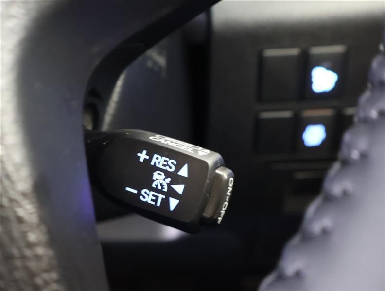 アダプティブクルーズコントロール機能付きです。走行中に先行車の様子を検知しながら、設定した車速の範囲内で先行車との距離のキープを支援します。詳細は販売店スタッフまでおたずねください。
