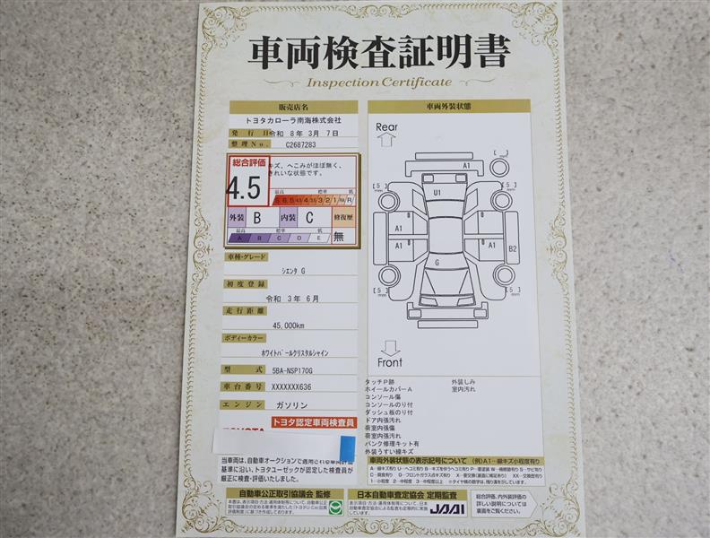 ※ 「定期点検整備なし(要整備箇所あり)」の場合、整備箇所につきましては、販売店へお問い合わせください。