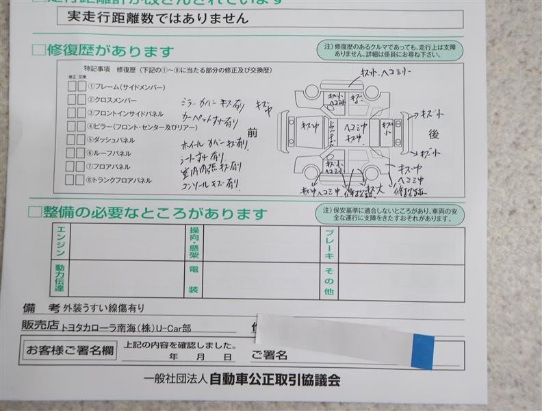 ※ 「修復歴あり」の場合、修復部位の詳細につきましては、販売店へお問い合わせください。