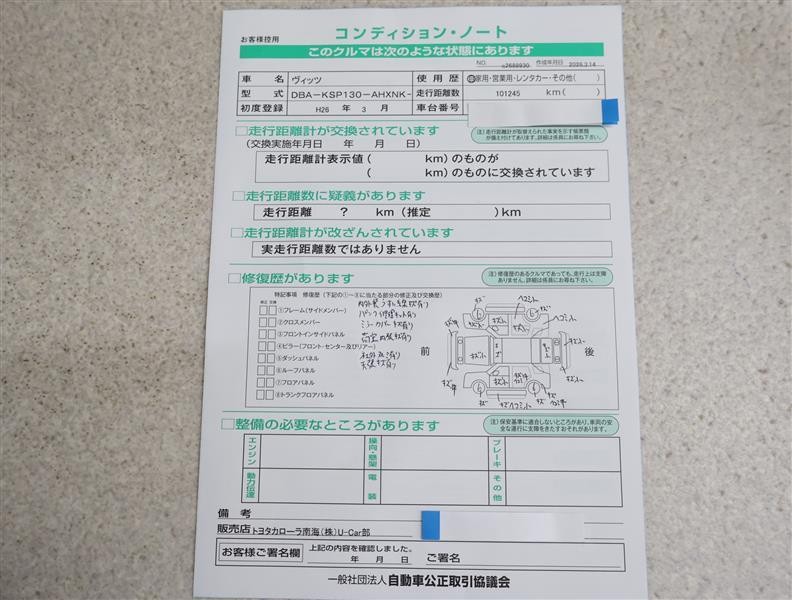※ 「定期点検整備なし(要整備箇所あり)」の場合、整備箇所につきましては、販売店へお問い合わせください。