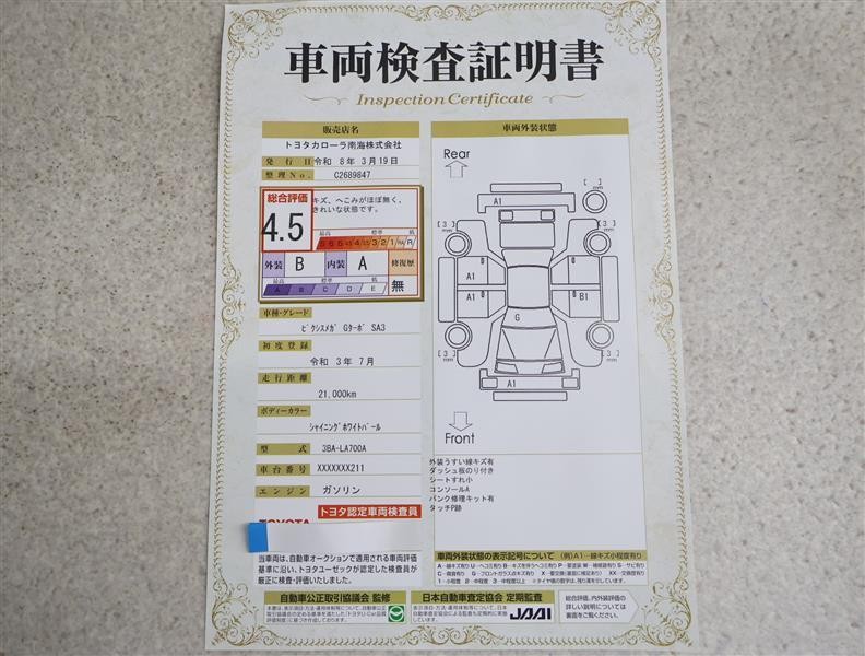車輌検査証明書付き。
