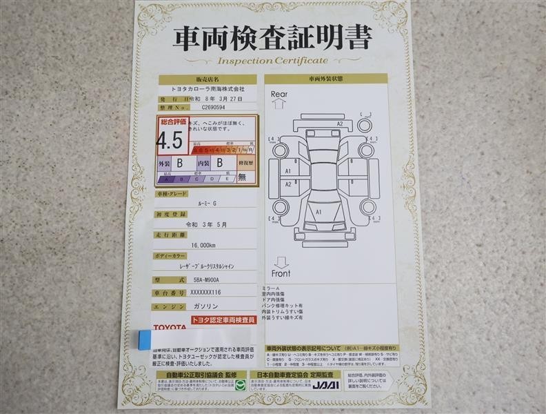 トヨタ車のプロの検査員が実施した「車両検査証明書」付き!車両の状態をこれ1枚でチェックできます!