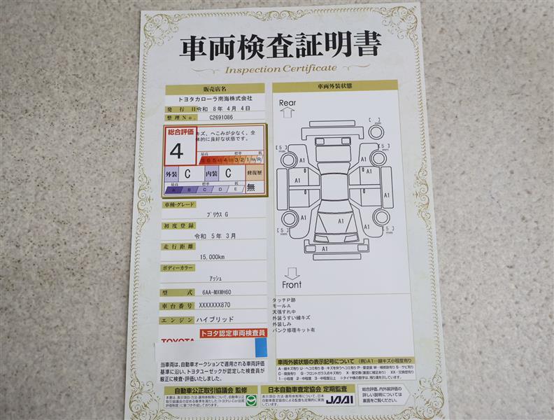 トヨタ車のプロの検査員が実施した「車両検査証明書」付き!車両の状態をこれ1枚でチェックできます!