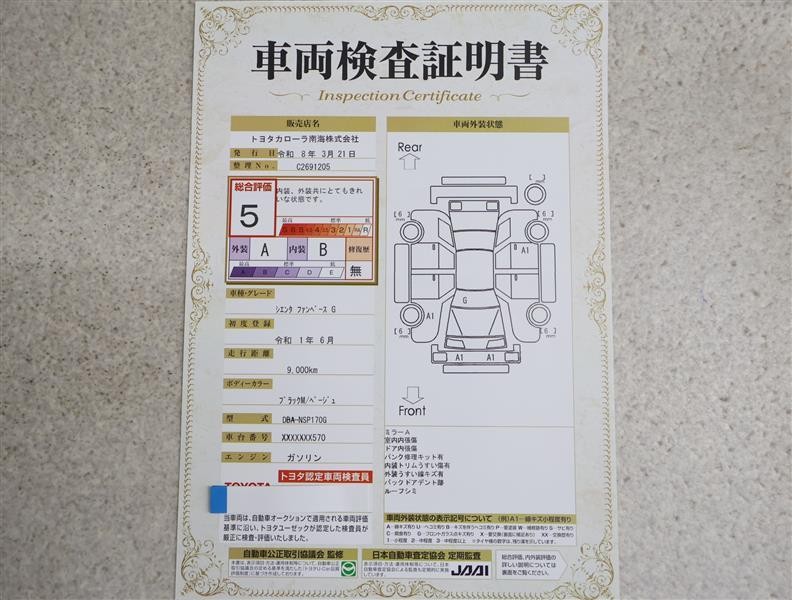 トヨタ車のプロの検査員が実施した「車両検査証明書」付き!車両の状態をこれ1枚でチェックできます!