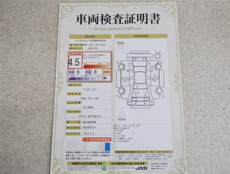 トヨタ車のプロの検査員が実施した「車両検査証明書」付き!車両の状態をこれ1枚でチェックできます!