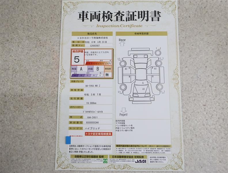 トヨタ車のプロの検査員が実施した「車両検査証明書」付き!車両の状態をこれ1枚でチェックできます!