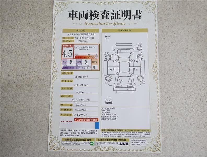 トヨタ車のプロの検査員が実施した「車両検査証明書」付き!車両の状態をこれ1枚でチェックできます!