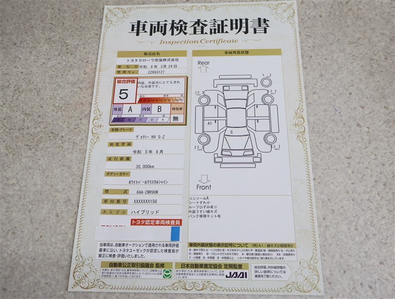 車両検査証明書付きです!だれでも中古車の状態がすぐにわかるよう、車のプロが客観的にチェック。車両の状態やわずかなキズも正確にお伝えします。