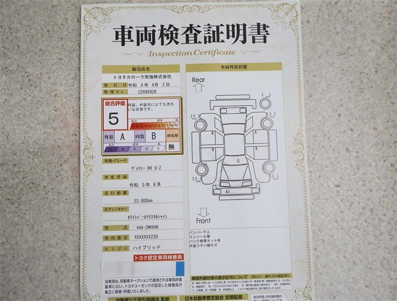 トヨタ車のプロの検査員が実施した「車両検査証明書」付き!車両の状態をこれ1枚でチェックできます!