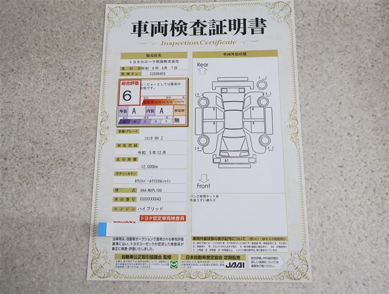 車両検査証明書付きです!だれでも中古車の状態がすぐにわかるよう、車のプロが客観的にチェック。車両の状態やわずかなキズも正確にお伝えします。