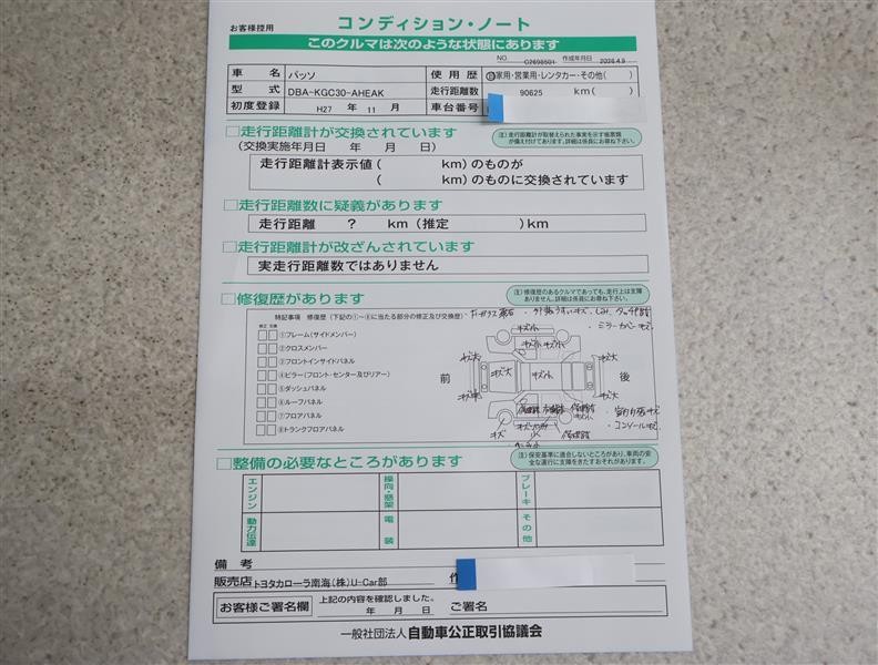 ※ 「定期点検整備なし(要整備箇所あり)」の場合、整備箇所につきましては、販売店へお問い合わせください。