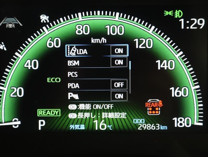 レーダークルーズコントロール(全車速追従機能付)付きです。車速に応じて追従支援してくれるので、ロングドライブも快適です。詳細は販売店スタッフまでおたずねください。